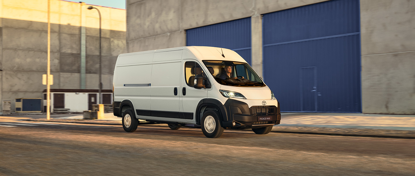 Eleganta och rymliga Proace Max har plats för tre personer och har en bekväm kupé där du kan arbeta eller koppla av. Toyotas ProTouch-multimediasystem är navet i bilens intuitiva uppkoppling och styrs via en högupplöst 10-tums pekskärm. Proace Max kommer med den senaste Toyota Safety Sense som innehåller en rad förarassistanssystem och säkerhetssystem som stöttar dig som förare och gör körningen enklare och säkrare. Den största varianten, Proace Max Electric (L4H3), har en lastkapacitet på 17 m³. Lastning och åtkomst förenklas tack vare fullhöjdsdörrar och en praktisk fyrkantig öppning med låg tröskel. Bakdörrarna går dessutom att öppna 270 grader vilket ytterligare underlättar in- och urlastning. Utrustad med den senaste batterielektriska tekniken ger det en räckvidd på upp till 42 mil*. Att ladda batteriet till 80 % med snabbladdningssystem tar cirka 55 minuter.